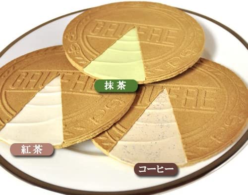 Le nom du produit "Gaufres au Goutte" signifie "Gaufres à déguster pendant l'heure du goûter. La gaufre, qui représente les thés japonais et occidentaux, est constituée d'une pâte croustillante, savoureuse, finement cuite au four et sandwichée entre du thé noir, du thé vert et de la crème de café. L'arôme de chaque thé se répand dans votre bouche, créant un moment de détente.