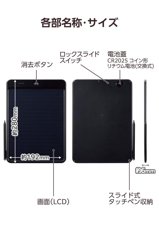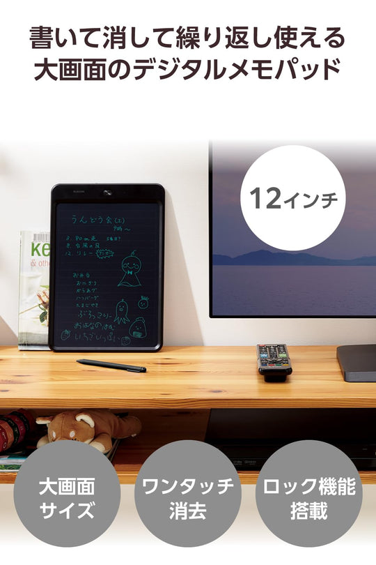 ELECOM Tablette Électronique 12 Pouces Memo Pad avec Fonction de Verrou EP-12BK Noir