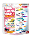 Découvrez le plaisir du bain avec le dernier sel de bain Asobi Vehicle Shinkansen ! Lorsque le sel de bain parfumé à l'orange se dissout dans l'eau, une mascotte surprise de train à grande vitesse apparaît. Ce produit combine le plaisir d'un bain relaxant avec l'excitation de collectionner l'une des dix mascottes différentes sur le thème du Shinkansen. Chaque paquet contient un sel de bain et une mascotte sélectionnée au hasard, rendant chaque bain une surprise agréable pour les passionnés de trains et les enfants.