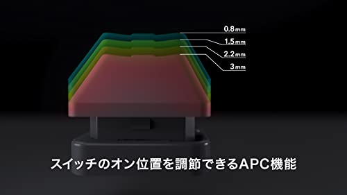 De plus, le clavier R3 est équipé d'une fonction APC qui permet aux utilisateurs d'ajuster la position des touches en quatre étapes : 0.8, 1.5, 2.2, et 3 mm. Cette fonctionnalité, conjointement avec le logiciel dédié offrant plus de fonctions telles que le remplacement de la disposition des touches, offre une expérience utilisateur personnalisable. Les utilisateurs peuvent également personnaliser la surface supérieure du clavier avec le kit de conception de panneau en option.