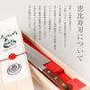L'emballage des couteaux Ebisu est tout aussi impressionnant. Chaque couteau est présenté dans une boîte spéciale en bois de Paulownia, décorée du logo de la marque, Ebisu-sama, imprimé sur le meilleur papier Washi d'Echizen avec des accents dorés et argentés. Avant expédition, chaque couteau subit une inspection rigoureuse, et seuls ceux qui répondent à nos normes élevées reçoivent le sceau d'approbation "lame Ebisu". Ce design d'emballage méticuleux fait des couteaux Ebisu un choix populaire pour un usage personnel et comme cadeaux.
