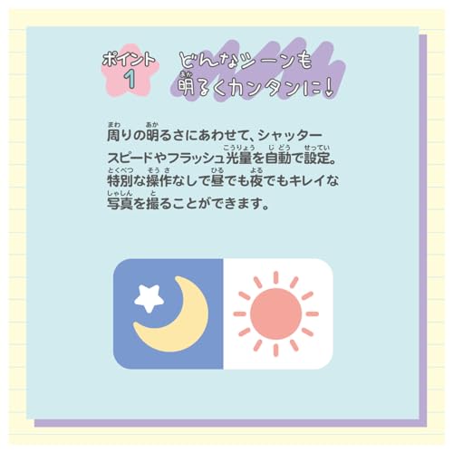 इंस्टेंट कैमरा "चेकी" पेश है जिसमें आकर्षक "ची-का" डिज़ाइन है, जो तुरंत प्रिंटिंग के लिए एकदम सही है! यह कैमरा आपकी तस्वीरों को निजीकृत करने के लिए विशेष डेको स्टिकर के साथ आता है। इसमें आसपास की चमक के आधार पर स्वचालित शटर गति और फ्लैश तीव्रता समायोजन की सुविधा है, जो बिना किसी विशेष ऑपरेशन के दिन और रात दोनों समय सुंदर तस्वीरें सुनिश्चित करता है। उपयोग में आसान डिज़ाइन शानदार क्लोज-अप शॉट्स और सेल्फी के लिए अनुमति देता है, सेल्फी मिरर और स्वचालित फ्लैश समायोजन के लिए धन्यवाद जो व्हाइट-आउट को रोकता है। सुविधाजनक ले जाने के लिए एक समर्पित हाथ का पट्टा शामिल है।