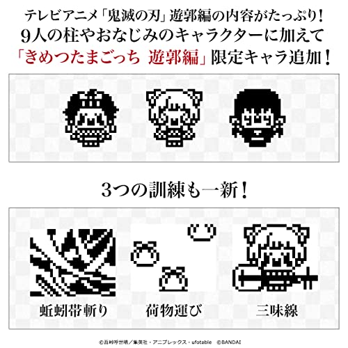 अपनी तमागोची ओनिगिरी या ग्योकुरो को उनकी ज़रूरतों के हिसाब से खिलाएँ और उनकी क्षमताओं को बढ़ाने के लिए उन्हें मिनी-गेम के ज़रिए प्रशिक्षित करें। प्रशिक्षण अभ्यास "ब्लेड ऑफ़ ओनी-एलिमिनेशन" एनीमे के इर्द-गिर्द थीम पर आधारित हैं, जिसमें श्रृंखला के पात्र और परिदृश्य शामिल हैं।