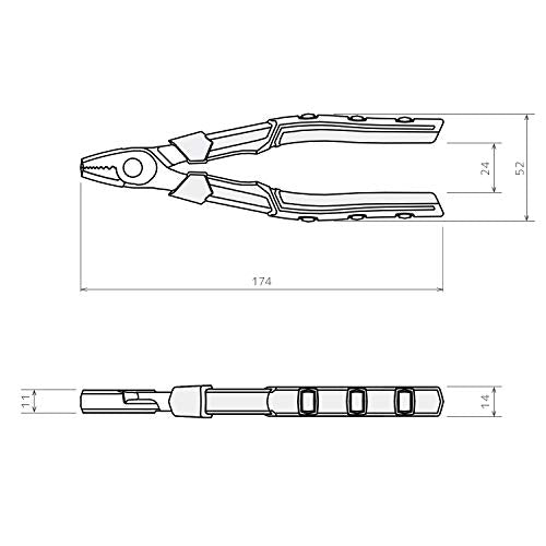 इस प्लायर में ऐसा अद्वितीय टिप आकार है जिससे कम सिर वाले स्क्रू (ट्रस स्क्रू) के साथ उपयोग कर सकते हैं। टिप पर क्षैतिज ग्रूव्स को इंटरलॉक करने के लिए व्यवस्थित किया गया है, जो सुनिश्चित करता है कि यह पतली प्लेटों को भी सुरक्षित रूप से पकड़े। ग्रिप तेल प्रतिरोधी और पर्यावरण के अनुकूल एलास्टोमर से बनी होती है, जिसे हाथ में अच्छी तरह से फिट होने के लिए डिज़ाइन किया गया है। यह प्लायर ø3-11mm की रेंज के स्क्रू साइज़ के साथ संगत है, जिसकी कुल लंबाई 175mm और वजन 165g है।
