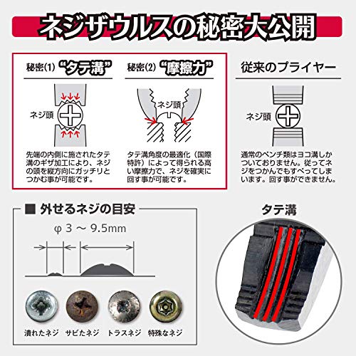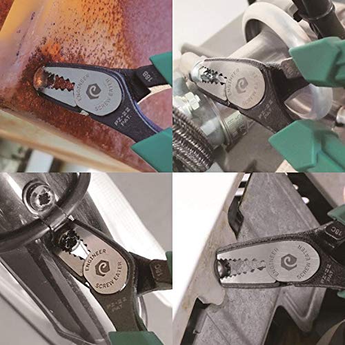 यह प्लायर कुचले या जंगयुक्त स्क्रू को आसानी से पकड़कर मोड़ सकता है। इसका उन्नत टिप आकार कम सिर वाले स्क्रू (ट्रस स्क्रू) के साथ उपयोग करने में सक्षम है, और टिप को शीर्षतः पकड़ा जा सकता है, जो संकीर्ण स्थलों में काम करने की अनुमति देता है। वॉल्ट टू टिपज की संक्षिप्त दूरी कम बल के साथ कसे हुए स्क्रू को भी मोड़ने की सुविधा देती है। टिप पर क्षैतिज ग्रूव्स इंटरलॉक करने के लिए व्यवस्थित हैं, जो अत्यधिक पतली प्लेटों को सुरक्षित रूप से पकड़ने में सक्षम है। ग्रिप तेल प्रतिरोधी और पर्यावरण के अनुकूल एलास्टोमर से बनी होती है, और डिज़ाइन किया गया ग्रिप हाथ में अच्छी तरह से फिट होता है। प्लायर हल्के और टॉर्शन-प्रतिरोधी भी होते हैं, जिनमें T-आकार की ग्रिप होती है।