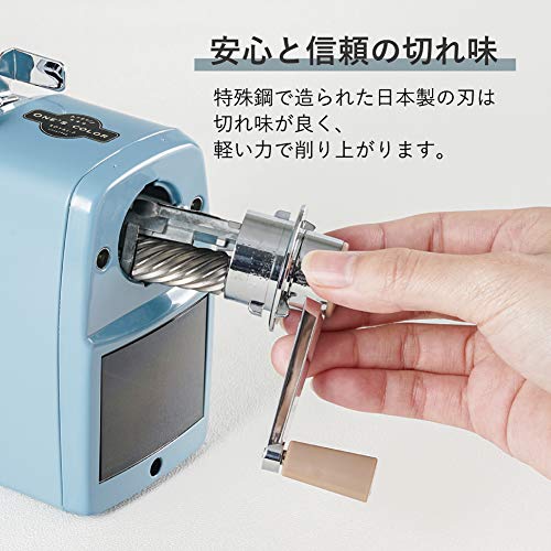इस पेंसिल शार्पनर की बॉडी टिकाऊ शीट मेटल से बनी है, जबकि शार्पनिंग ब्लेड सटीकता और स्थायित्व के लिए विशेष स्टील से बना है। हैंडल धातु से बना है और टूटने के लिए प्रतिरोधी है।
