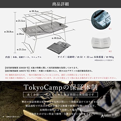 टोक्योकैम्प फ़ायर पिट किसी भी कैम्पिंग यात्रा के लिए एक पूर्ण योजना है। इसकी सरल और संक्षिप्त डिजाईन से इसे परिवहन करना और सिर्फ 15 सेकंड में सेट करना आसान होता है। इसके छोटे आकार के बावजूद, यह बिना विभाजन के अधिक मात्रा में लकड़ी संग्रहित कर सकता है। इसके साथ एक ए 4 साइज का बैग आता है जो आसानी से संग्रहण और परिवहन कर सकता है। फायर पिट का उपयोग न केवल खुली आग पर पकाने के लिए किया जा सकता है, बल्कि ग्रिल, पॉट, या अन्य पकाने के बर्तन के रूप में भी किया जा सकता है ताकि पूर्ण पैमाने पर कैम्पफायर भोजन का आनंद लिया जा सके। इसका उपयोग एकल और परिवार के कैम्पिंग के लिए किया जा सकता है।
