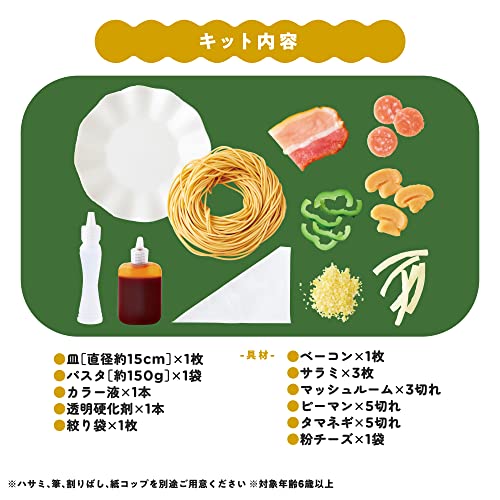 किट में यथार्थवादी दिखने वाले नेपोलिटन व्यंजन बनाने के लिए सभी आवश्यक सामग्री और सामग्रियाँ शामिल हैं। परोसने के लिए दी गई प्लेट का व्यास लगभग 15 सेमी है।