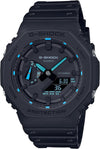 जी-शॉक GA2100-1A2 नियोन एक्सेंट एनालॉग-डिजिटल घड़ी काली नीली