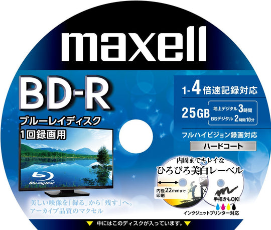 मैक्सेल बीडी-आर 25जीबी 4x 50-पैक इंकजेट प्रिंटेबल 180मिनट टेरेस्ट्रियल 130मिनट बीएस डिजिटल बीआरवी25डब्ल्यूपीई 50एसपीजेड