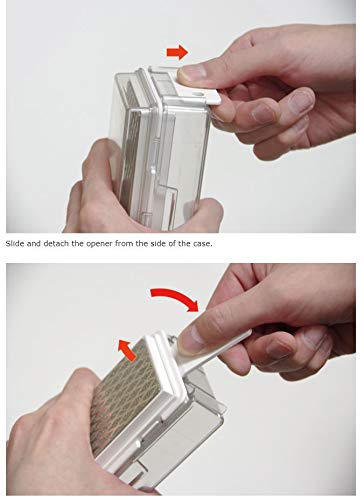 डायमंड सतह सिर्फ समतलीकरण के लिए ही नहीं, बल्कि तेल के साथ कड़े धातु के ब्लेड की पॉलिशिंग के लिए भी उपयुक्त है। कृपया ध्यान दें, डायमंड पैटर्न में भिन्नता हो सकती है, लेकिन इससे प्रदर्शन पर कोई असर नहीं पड़ता। केस के किनारे से स्लाइड करके बाहर आने वाले दिए गए ओपनर की मदद से #150 और #500 वाले पक्ष आपस में बदले जा सकते हैं। ओपनर को मुख्य प्लेट और केस के बीच लगाएँ, टेक लगाकर ऊपर उठाएँ, प्लेट को पलटें, और फिर से लगाकर साइड बदल दें।