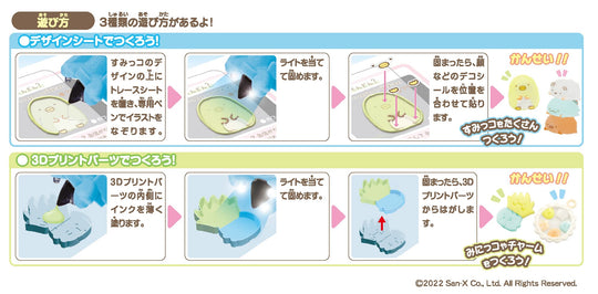 Set Sumikko Gurashi kini tersedia dalam seri "3D Dream Arts Pen". Pena inovatif ini memungkinkan Anda mengubah gambar menjadi objek tiga dimensi dengan mengeraskan tinta gel menggunakan cahaya, menjamin pengalaman yang aman tanpa panas. Set ini memungkinkan Anda menciptakan karakter dan hiasan Sumikko Gurashi yang menggemaskan, menjadikannya aktivitas yang menyenangkan untuk penggemar segala usia.