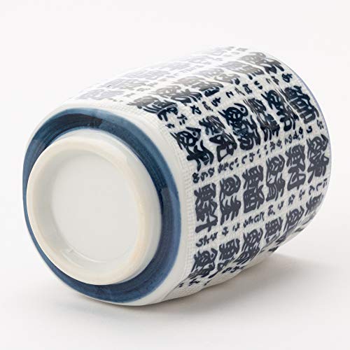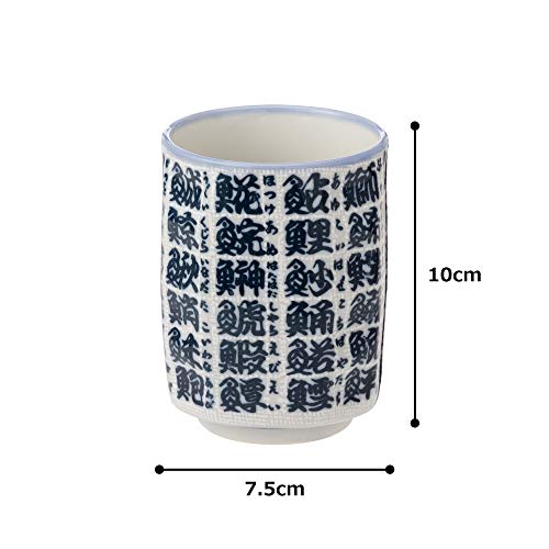 Cangkir yunomi tradisional Jepang ini, yang digunakan untuk air panas, dibuat dari keramik Minoyaki dan tanah liat, terkenal dengan teksturnya yang lembab serta desain yang sederhana namun tak terlupakan. Cangkir ini dihiasi dengan aksara kanji yang mewakili ikan dan hewan lainnya, sehingga tidak hanya menjadi sepotong peralatan meja yang indah tetapi juga alat unik untuk mempelajari aksara Kanji. Estetikanya yang elegan dan desain fungsional membuatnya sempurna untuk setiap upacara teh atau penggunaan sehari-hari.