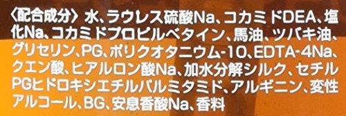 Air, Sodium Laureth Sulfate, Cocamide DEA, Sodium Chloride, Cocamidopropyl Betaine, Minyak Kuda, Minyak Camellia, Glycerin, PG, Polyquaternium-10, EDTA-4Na, Asam Sitrat, Sodium Hyaluronate, Silk Hidrolis, Cetyl PG Hydroxyethyl Palmitamide, Arginine, Alkohol Denaturasi, BG, Sodium Benzoate, Fragrance.