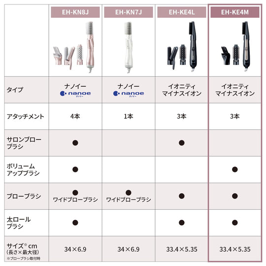 - Dimensi unit utama: Panjang 33,4 cm × Diameter maksimum 5,35 cm (dengan sikat pengering terpasang)
