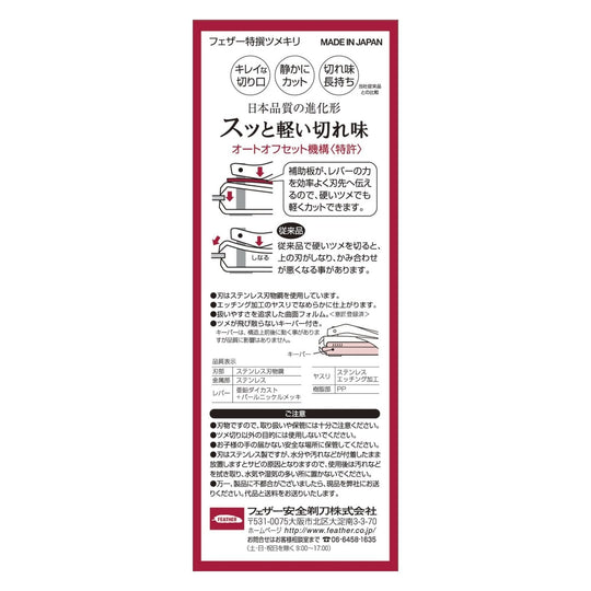 FEATHER Pemotong Kuku Premium Besar Model L Stainless Steel Jepang