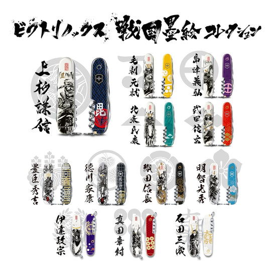 Multi-tool VICTORINOX ini adalah bagian dari "Sengoku Sumi-e Collection," sebuah seri unik yang menggabungkan sejarah, seni, dan kepraktisan. Koleksi ini menampilkan lukisan tinta asli oleh seniman sumi-e terkenal OKAZU, yang dikenal dengan penggambaran dinamis para panglima perang era Sengoku. Edisi keempat ini menyoroti lima komandan legendaris yang berjuang keras melawan kekuatan pusat, dengan setiap alat menampilkan goresan kuas kuat OKAZU dan segel pribadinya, menjadikannya alat fungsional sekaligus karya seni koleksi. Desain ini mewujudkan semangat periode Sengoku, dihidupkan untuk era modern.