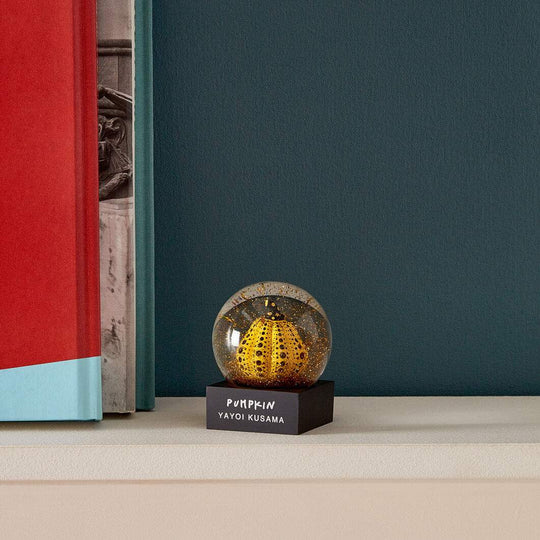 Bola salju ini terinspirasi oleh karya seni ikonis "Pumpkin" dari seniman avant-garde, Yayoi Kusama. Saat digoyangkan, serpihan emas berkilauan akan berputar dengan anggun, menciptakan efek yang memikat. Ini adalah koleksi unik yang menangkap esensi visi artistik Kusama.