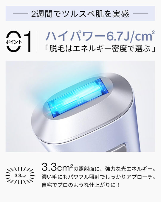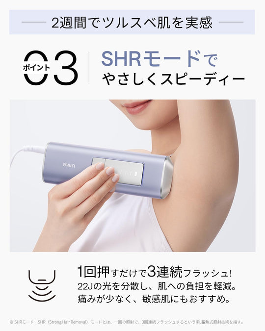 Vivi l'esperienza di una pelle liscia da salone a casa tua con Ulike AirsPro S, progettato per offrire una depilazione efficace grazie alla sua potente energia di 22J. Il dispositivo concentra un'energia ad alta densità di 6.7J/㎠ su una superficie di 3.3㎠ per colpire efficacemente le radici dei peli. Dotato della tecnologia esclusiva Sapphire Cooling di Ulike, garantisce un'esperienza confortevole integrando il raffreddamento con il processo di irradiazione, eliminando la necessità di gel o agenti refrigeranti. La nuova modalità SHR (Strong Hair Removal) offre un trattamento potente ma delicato, ideale per aree delicate con peli spessi, come viso, barba e zona VIO.