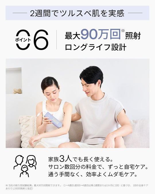 Il dispositivo include una modalità di irradiazione continua automatica per un utilizzo fluido e senza sforzo, riducendo l'affaticamento della mano. Basta far scorrere il dispositivo sulla pelle per una cura completa, mentre una modalità manuale è disponibile per il trattamento preciso di piccole aree come dita, ascelle e zona VIO. Ulike AirsPro S può essere utilizzato fino a 900.000 volte, rendendolo una soluzione economica per tutta la famiglia. È adatto per l'uso sulla maggior parte delle aree del corpo, sebbene vi siano alcune eccezioni, quindi si prega di consultare il manuale di istruzioni per i dettagli.