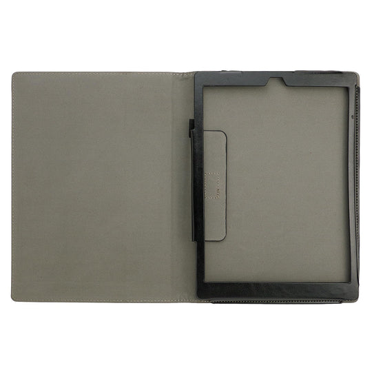 Una custodia semplice ed elegante in stile notebook, progettata specificamente per i dispositivi di carta digitale QUADERNO A5 e DPT-CP1. La custodia è dotata di una funzione di supporto, che consente di posizionare il dispositivo per una visione o una scrittura confortevole. Realizzata in pelle sintetica PU di alta qualità, offre un aspetto e una sensazione simili alla vera pelle. Include una chiusura magnetica per un'apertura e chiusura facili e sicure, oltre a un comparto dedicato per una penna stilo. Tutte le porte e gli interruttori rimangono accessibili senza dover rimuovere il dispositivo dalla custodia.