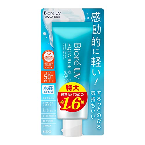 El Kao Biore UV Aqua Rich Watery Essence es un protector solar ligero que ofrece una aplicación suave y uniforme, perfecto para usar como base de maquillaje. Su fórmula única UV permeable al agua previe...