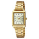 - **ケースサイズ (縦 × 横 × 高さ):** 31 × 22 × 7.5 mm - **重量:** 51 g - **ケース・ベゼル材質:** ゴールドトーン - **バンド:** ステンレススチールバンド、トリプルフォールドクラスプ付き - **防水性能:** 防水仕様 - **電源・電池寿命:** SR626SW電池で約3年 - **ガラス:** ミネラルガラス - **表面処理:** ゴールドイオンプレーティングバンドとケース - **精度:** 月差±20秒 - **時刻表示機能:** アナログ表示、3針(時、分、秒)