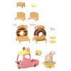 ドーナツワゴンは、ストアスタイルとバススタイルの2通りの使い方ができる多機能デザインです。バススタイルでは、最大4体のベビーフィギュアを乗せることができます。ワゴンの後部には、テーブル、椅子、すべてのアクセサリーを収納できるように設計されており、すっきりと片付けられます。さらに、フライヤーはドーナツワゴンに接続でき、シームレスな遊び体験を提供します。