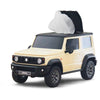 "製品説明","世界初、スズキの人気車「ジムニーシエラ」を模したウェットティッシュケースのご紹介です。この製品はスズキ株式会社のライセンスを受けたもので、取り外し可能なボンネットと、鍵や小物を収納できる小さなコンパートメントが特徴です。タイヤとホイールは回転し、手で動かして走行させたり、インテリアとして飾ったりすることができます。ケースは一般的なウェットティッシュや、15cm x 8.5cm x 6cmまでの高さのティッシュバッグに対応しています。この製品はウェットティッシュ用のケースであり、車両ではありませんのでご注意ください。ミラー部分は簡単に取り外せる仕様で固定されていないため、乳幼児や子供の周りで使用する際は取り外してください。初回生産分の屋根はマット仕上げで、追加生産分以降の屋根はマットと混合されています。サイズ(約):長さ285mm x 幅145mm x 高さ135mm。重量(約):658g。素材:ABS、PVC、GPPS、シリコン。"