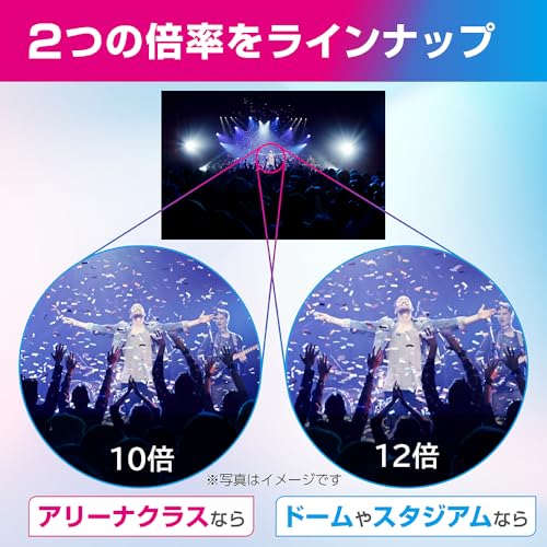 - 倍率: 12倍 - 画像安定化機能: あり - 適用シーン: ライブコンサート、舞台公演、アウトドア活動 - デザイン: コンパクトで快適なハンドリング
