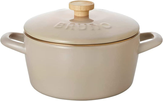 「BRUNO×FUJIHORO」のコラボレーションから登場したスタイリッシュなホーロー鍋をご紹介します。この両手鍋は、煮込み料理に最適なだけでなく、蓋を外せばオーブン料理にも対応します。持ちやすいハンドルと天然木のつまみが、日々の料理をより快適にします。ガラスのような表面は臭いや汚れに強く、お手入れも簡単です。ガスコンロやIHクッキングヒーターの両方で効率よく加熱でき、屋内外での使用にぴったりです。