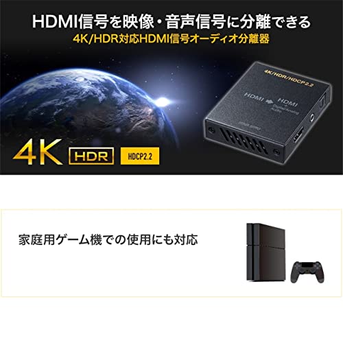元のHDMI信号(映像と音声)はディスプレイに出力される一方で、HDMIオーディオは分離され、AVアンプやスピーカーに出力されるため、迫力のあるサウンド体験が可能です。
