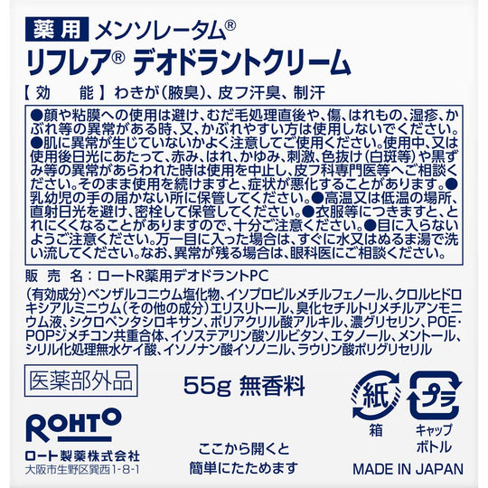 メンソレータム リフレア デオドラントクリーム 無香料 高い密着性 55g
