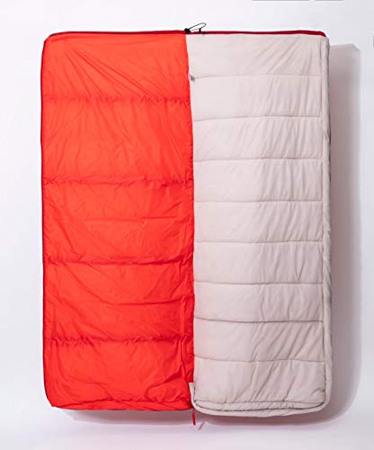 この製品は、CHUMSのロゴモチーフが特徴の多用途な封筒型寝袋です。快適さと適応性を重視して設計されており、表面は高強度のリップストップ生地、肌に触れる部分はトリコット素材で柔らかさと暖かさを提供します。最低気温4℃まで対応可能です。頭部にはドローコードが付いており、側面から足元にかけてL字型のジッパー(Wジッパー)が付いているため、温度や状況に応じて柔軟に使用できます。例えば、暑くなったら足だけを出したり、布団のように広げて使うことも可能です。持ち運びに便利な収納バッグが付属しており、Booby Birdのロゴが入っています。
