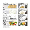 電気クッカーはAタイプの電源プラグを使用し、AC100-120V/500W-720W、AC220-240V/600W-720Wの電源供給/消費電力を切り替え可能です。50Hz/60Hzの周波数で動作し、過温度保護装置としてサーモスタットと温度ヒューズを備えています。クッカーのサイズは80φx170H(mm)、重量は540g(コードやその他の付属品を除く)です。最小容量は約400ml、最大容量は約800mlです。動作環境温度は0~35°Cです。付属品には専用コード(コード長1m)、専用トレイ(φ140mm)、専用ポーチが含まれます。
