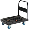 運搬作業、工場内、倉庫物流に最適な重荷重対応の固定ハンドル式平台車。均等荷重で最大400 kg (882 lb)に対応。オリーブカラー。125 mm (5 in)の滑らかに転がるキャスター(自在2輪・固定2輪)を装備し、安全に固定できるストッパー(MPK-900FB)を付属。