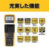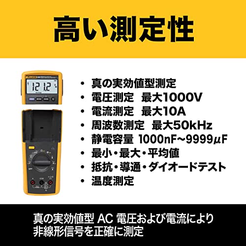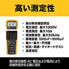 - DC電圧 (V): 1000 - AC電圧 (V): 1000 - DC電流 (A): 10 - AC電流 (A): 10 - 抵抗 (Ω): 40M - 検出方式: 真のRMSタイプ (RMS) - 電源: 単三電池 x 5 (付属) - 幅 x 奥行 x 高さ: 93 x 53 x 193 mm - 連続使用時間: 400時間 - 最大表示: 6000カウント - 最大1000VのAC/DC電圧を測定 - 低消費電力のワイヤレス技術 - コンデンサ (mF): 10