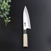 サイズ(約):28.5×5×2.5cm。刃は片刃のステンレス刃物鋼製、柄は天然木、口金はナイロン製。日本製。魚の身おろしや頭・小骨のカットに最適です。
