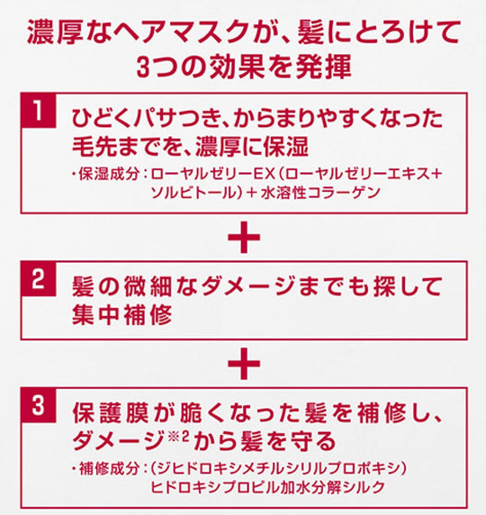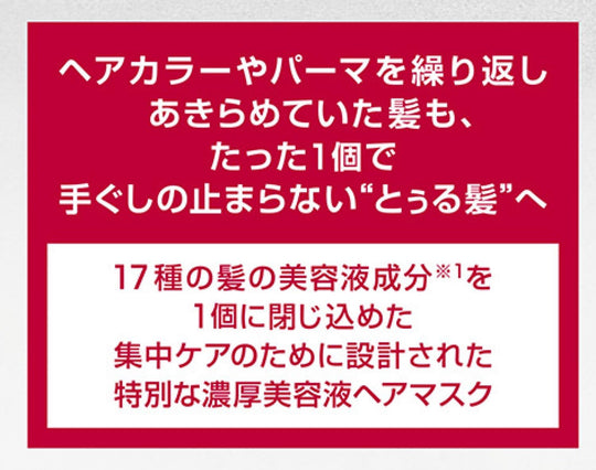 While existing hair masks contain 6 kinds of beauty ingredients, the Intensive Care Shot contains a whopping 17 kinds of beauty ingredients.