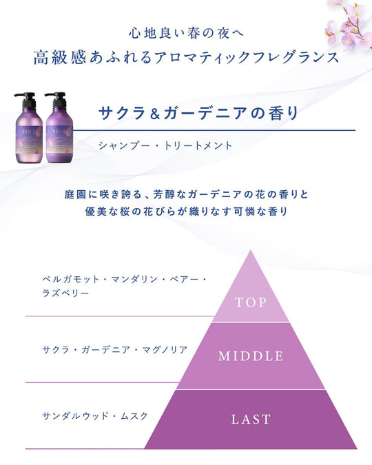 YOLU 사쿠라 시리즈는 YOLU 봄 시리즈의 두 번째 작품으로, 벚꽃이 물든 환상적인 밤을 콘셉트로 잡고 있습니다. 이 제품은 머리카락과 피부를 위한 강력한 야간 케어를 제공하며, 잠자는 동안의 마찰 손상으로부터 머리카락을 보호합니다. 제품에는 외부 수리를 위한 신선한 콜라겐과 내부 수분 공급을 위한 나노 히알루론산이 포함되어 있으며, 봄철 자외선으로 인한 건조, 정전기, 꽃가루 같은 문제를 해결해줍니다. 또한, 크로노카디스, 네무노키 껍질 추출물, 오야마 체리 과일 추출물과 같은 세럼 성분이 포함되어 추가 수분을 제공합니다.