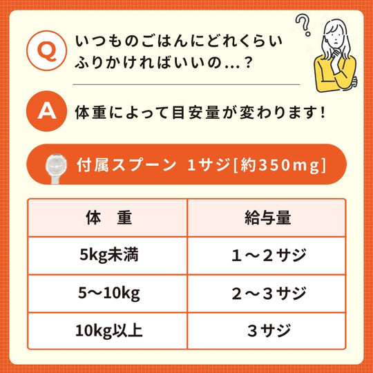 제공된 계량 스푼을 사용하여 권장량의 분말을 매일 투여하세요. 보충제를 고양이의 일반 사료와 섞어 쉽게 섭취할 수 있도록 하세요. 정기적인 사용은 고양이의 소화 건강과 전반적인 웰빙 유지에 도움이 됩니다.