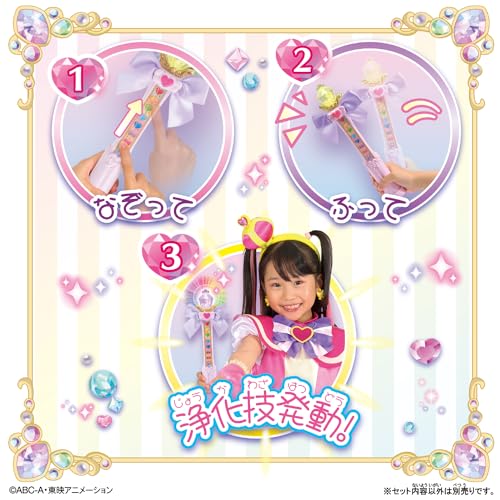 니고테 카나데 프렌들리 타크트와 함께 "완다후루 프리큐어"의 마법 세계를 경험하세요. 이 매력적인 아이템은 큐어 원더풀과 큐어 프렌들리의 팬들이 사랑하는 시리즈에서 본 정화 기술을 재현할 수 있게 해줍니다. 상징을 터치하고, 트레이싱하며, 타크트를 흔들어 사용자는 "도와줘! 키라린 애니멀! 모드"를 활성화하여 키라린 애니멀의 힘을 소환하거나, "프렌들리 벨라레! 모드"를 사용하여 결합 정화 기술을 실행할 수 있습니다. 또한, 타크트는 끝없는 재미를 위한 다섯 가지 타입의 미니게임을 제공합니다: "멜로디 모드," "자유 펜라이트 모드," "럭키 컬러 우라나이," "도레미 모드," 그리고 "토킹 모드!" 멜로디 모드에서는 시리즈의 엔딩송을 즐기고, 쇼처럼 춤을 출 수 있습니다.