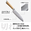 hana 산토쿠 나이프는 다양한 용도로 설계된 범용 주방 도구로, 가정에서 가장 흔히 사용되는 칼입니다. 고기, 생선, 채소 등을 자르는 데 적합합니다. 나이프의 크기는 330 x 45 x 20mm이며, 칼날의 폭은 200mm입니다. VG-10 (V-골드 10) 강철로 제작된 이 칼은 가장 강력하고 부식에 강한 재료 중 하나로 내구성과 날카로움을 보장합니다. 손잡이는 경도, 강도, 수분 저항성으로 알려진 백참나무로 만들어져 아름다운 나무결로 우아함을 더합니다.