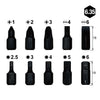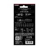 Set merangkumi: pemegang ratchet lurus; 10 bit 18 mm—Phillips PH1/PH2/PH3, Slot 4 mm/6 mm, Heks 2.5/3/4/5/6 mm (1 pc setiap satu); serta 2 pemegang. Bit ekstra pendek meningkatkan capaian dan kebolehkendalian. Dibuat di Jepun.
