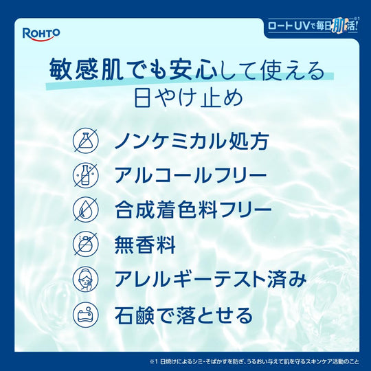 Sunscreen ini menawarkan perlindungan tinggi dengan SPF50+/PA++++, menggunakan formula bukan kimia yang lembut pada kulit. Ia bebas daripada penyerap UV, alkohol (etanol), dan pewarna sintetik, menjadikannya sesuai untuk jenis kulit sensitif. Jenis putih jernih memberikan kesan tone-up semula jadi, meningkatkan kilauan semula jadi kulit anda dan memberikan penampilan sihat dan berseri melalui kesan solekan. Direka untuk keselesaan, ia memastikan kulit anda kekal lembap sepanjang hari sambil melindungi daripada sinaran UV. Tekstur ringan memastikan aplikasi mudah dan rasa selesa pada kulit.