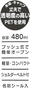Ukuran botol adalah 7,2 cm diameter dan 18 cm tinggi. Memiliki kapasitas 480ml. Tutup dan badan botol terbuat dari resin PET, sementara tutup dan sabuk terbuat dari polipropilen. Ujung mulut, sedotan, dan kemasan terbuat dari karet silikon, dan bantalannya terbuat dari elastomer. Set termasuk sabuk bahu, corong minum, dan stiker nama. Produk ini dibuat di Cina.