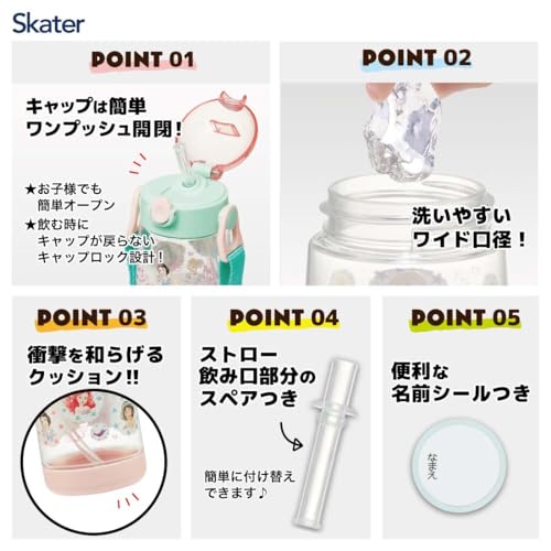 Produk ini adalah botol minum dengan sedotan, sangat cocok untuk anak-anak yang sedang belajar minum menggunakan sedotan. Terbuat dari resin PET yang tahan lama dan sangat transparan, menjamin ketahanan dan kejelasan isi cairan di dalamnya. Botol ini dilengkapi dengan desain kunci tutup yang mencegah tutup kembali saat minum, sehingga memudahkan anak-anak dalam penggunaannya. Juga termasuk mekanisme tombol dorong untuk membuka dengan mudah. Botol ini ringan dan kompak, sehingga mudah dibawa oleh anak-anak. Dilengkapi dengan sabuk bahu dan stiker nama untuk personalisasi. Bagian bawah botol dilengkapi dengan bantalan penyerap benturan untuk keawetan tambahan. Harap dicatat bahwa botol ini tidak cocok untuk digunakan di mesin pencuci piring atau pengering piring.