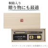 Hujung pen ini sangat tahan lama, memastikan rasa menulis yang cemerlang dan tahan lama. Ia hadir dalam tona kulit penyu mewah dengan aksen emas dan disajikan dalam kotak kayu paulownia yang halus. Termasuk tiga dakwat ganti, yang merupakan dakwat pigmen berasaskan air, untuk memastikan penulisan anda berjalan lancar.