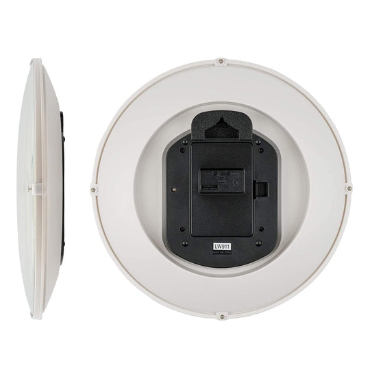 Jam dinding ini menggabungkan fungsi dengan gaya, menampilkan mekanisme kawalan radio yang secara automatik menetapkan masa, menghapuskan keperluan untuk pelarasan manual. Cat luminescent neobrite pada indeks dan jarum jam serta minit memastikan keterlihatan dalam gelap. Reka bentuk jam ini dipertingkatkan dengan indeks tiga dimensi dan kaca sfera, menjadikannya tambahan yang bergaya untuk mana-mana ruang dalaman. Ciri uniknya adalah jarum saat yang berhenti berdetik pada waktu malam, menyumbang kepada persekitaran yang lebih senyap.