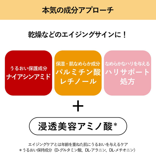 Emulsi anti-penuaan mewah ini direka khas untuk kulit matang yang memerlukan kilauan yang lebih tegang. Diperkaya dengan niacinamide, bahan pelindung kelembapan, ia lembut menutup kulit dengan lapisan kilauan mutiara, memberikan pengalaman pelembapan setaraf krim. Formula ini membantu mengurangkan penampilan garis halus dan kedutan, menjadikan kulit anda lebih tegang dan berseri. Ia diformulasikan khusus untuk penjagaan pelembapan kulit yang menua.